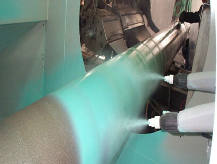 1、除去鋼管表面的附銹、油污和雜物,拋丸噴砂處理到GB/T8923中規定的Ss2.5級,錨紋深度50~70um,吹凈鋼管表面的灰塵和磨料。