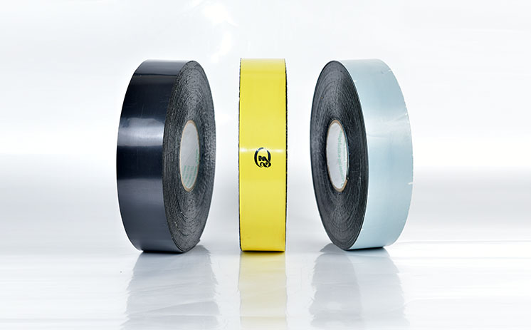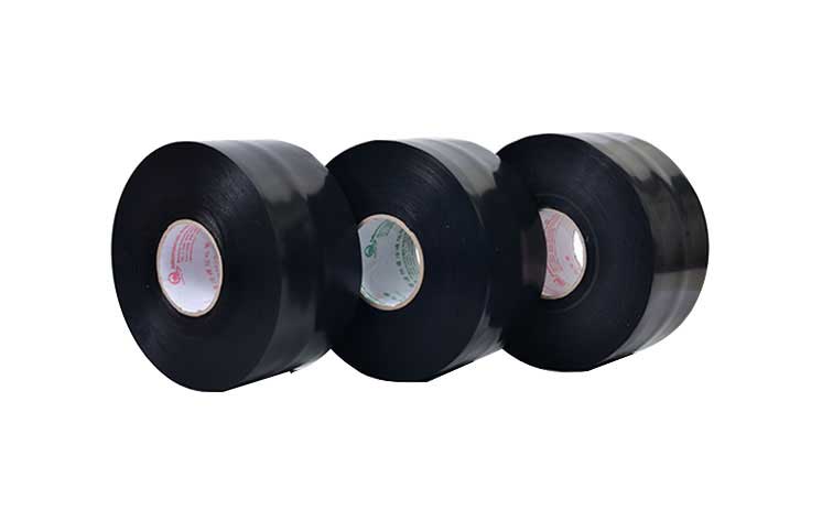 我公司制造的聚乙烯防腐冷纏帶有薄膠型(無離型膜)和厚膠型(帶有離型膜)兩種。基材都是由高低密度混合聚乙烯壓延糙毛膜(片)。膠粘劑分別為高性能丁基橡膠做膠層和丁基橡膠改性石油瀝青。聚乙烯冷纏帶產品采用國內的無溶劑共擠熱復合工藝制成。